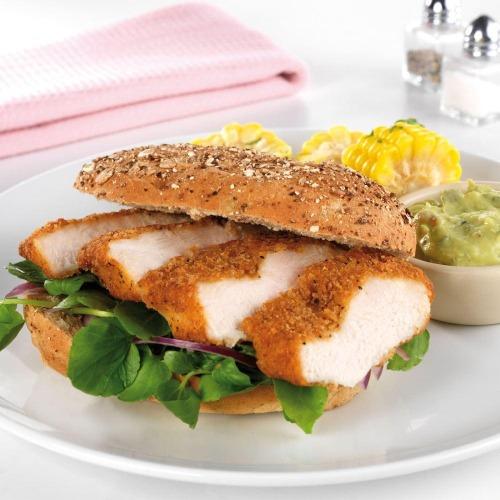 Pechuga de pollo (70%), agua, harina de TRIGO, pan rallado (harina de TRIGO, sal, levadura), fécula de maíz modificada, fécula de maíz autóctona, sal, especias (pimienta, apio, guindilla), GLUTEN DE TRIGO, gasificantes (bicarbonato sódico, difosfato de sodio), extracto de especias (pimienta, apio, pimentón), emulgente (trifosfato de sodio), vegetales en polvo (ajo y cebolla), extracto de levadura, dextrosa, aceite de palma no hidrogenado, antiaglomerante (dióxido de silicona).